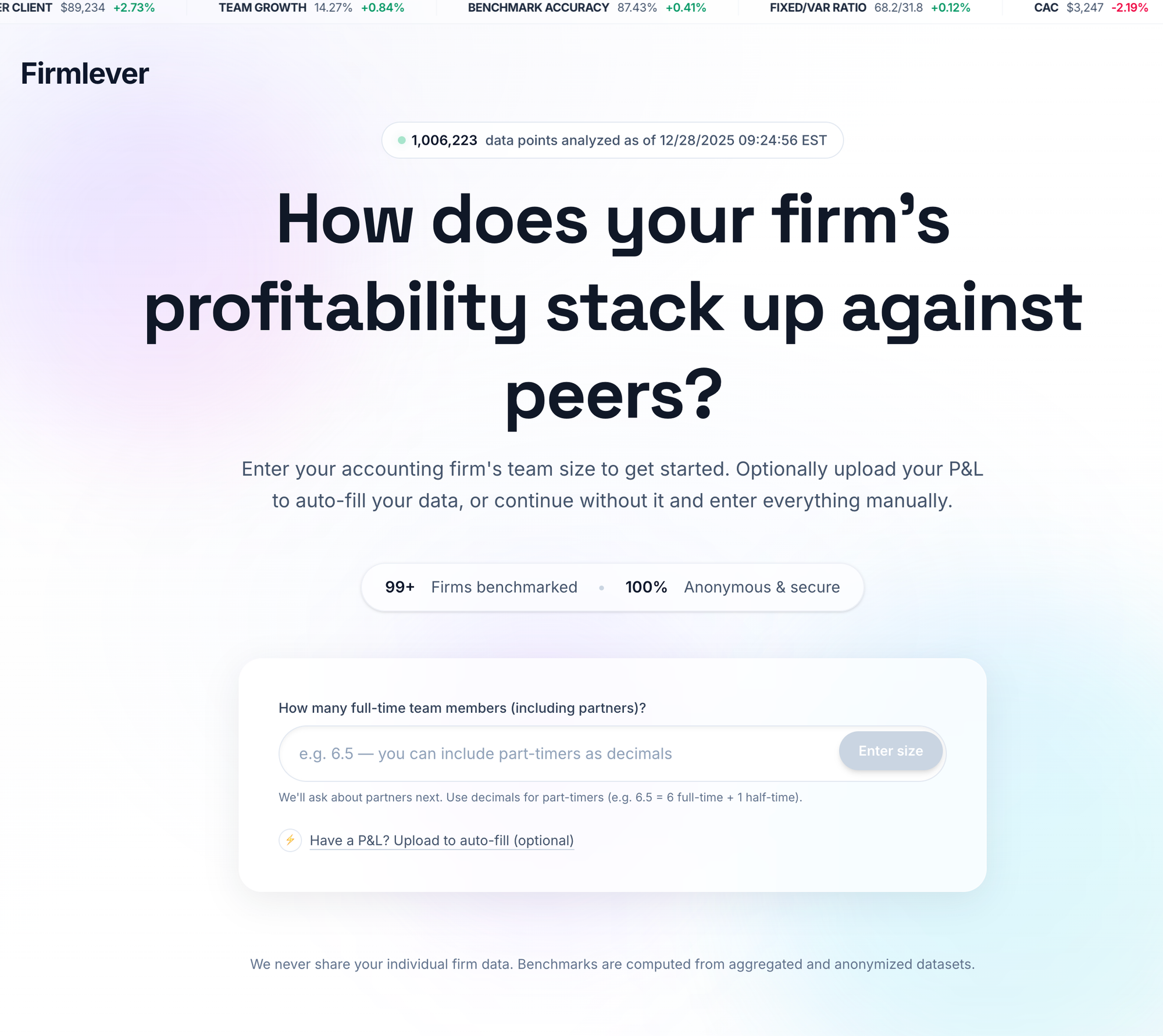 - Benchmark your firm among the top firms in your revenue bracket (Ready Now)