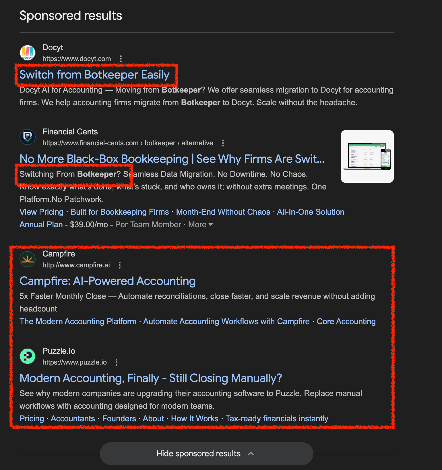 Google "botkeeper" and you can see that competitors pounced at the chance to buy up the "botkeeper" keywords and snatch up their client base: